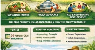 Cambodian Partnership for the Development of Rural Human Resources in Rural Areas Association (CamboDHRRA) will organize a training course on “Agroecology and Constructive Policy Engagement” which will be held: 🗓 Duration: 3 days (February 3–5, 2026) ⏰ Time: 8:30 am – 4:30 pm 📍 Location: Phnom Penh (specific location to …